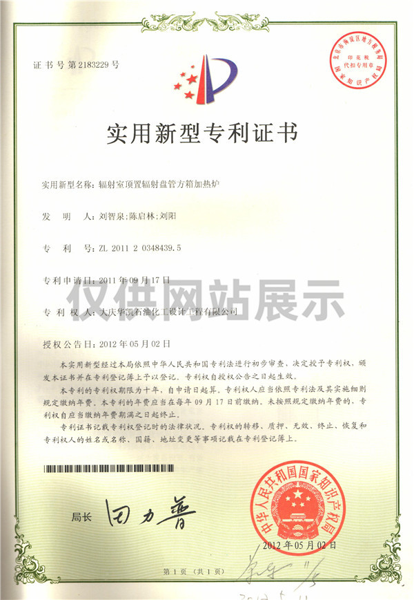 輻射室頂置輻射盤管方箱加熱爐