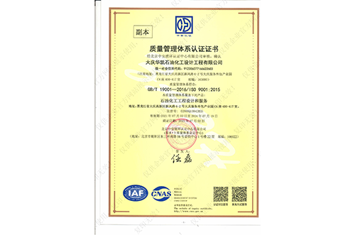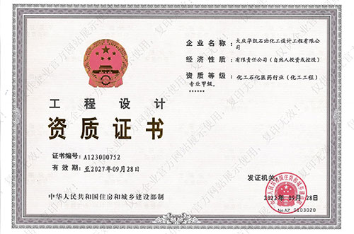 我公司具有化工工程專業(yè)甲級,石油及化工產品儲運、煉油工程、管道輸送、油田地面、制漿造紙工藝、城鎮(zhèn)燃氣工程、建筑工程乙級設計資質,石化、建筑乙級咨詢資質,并通過了ISO9001質量管理體系的認證、環(huán)境管理體系認證和職業(yè)健康安全管理體系認證,具有Ⅰ、Ⅱ、Ⅲ類壓力容器設計資格證及壓力管道設計資格證。
